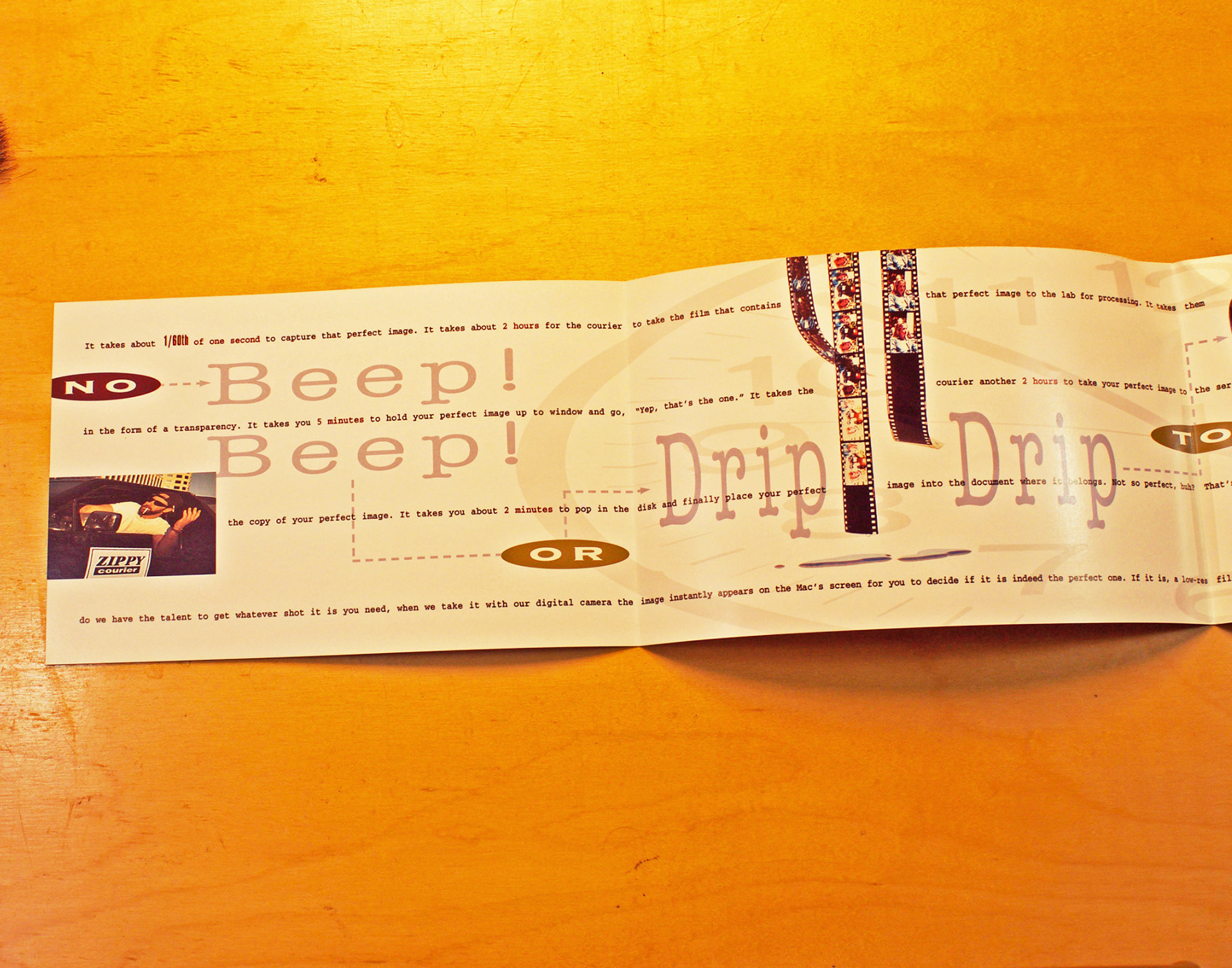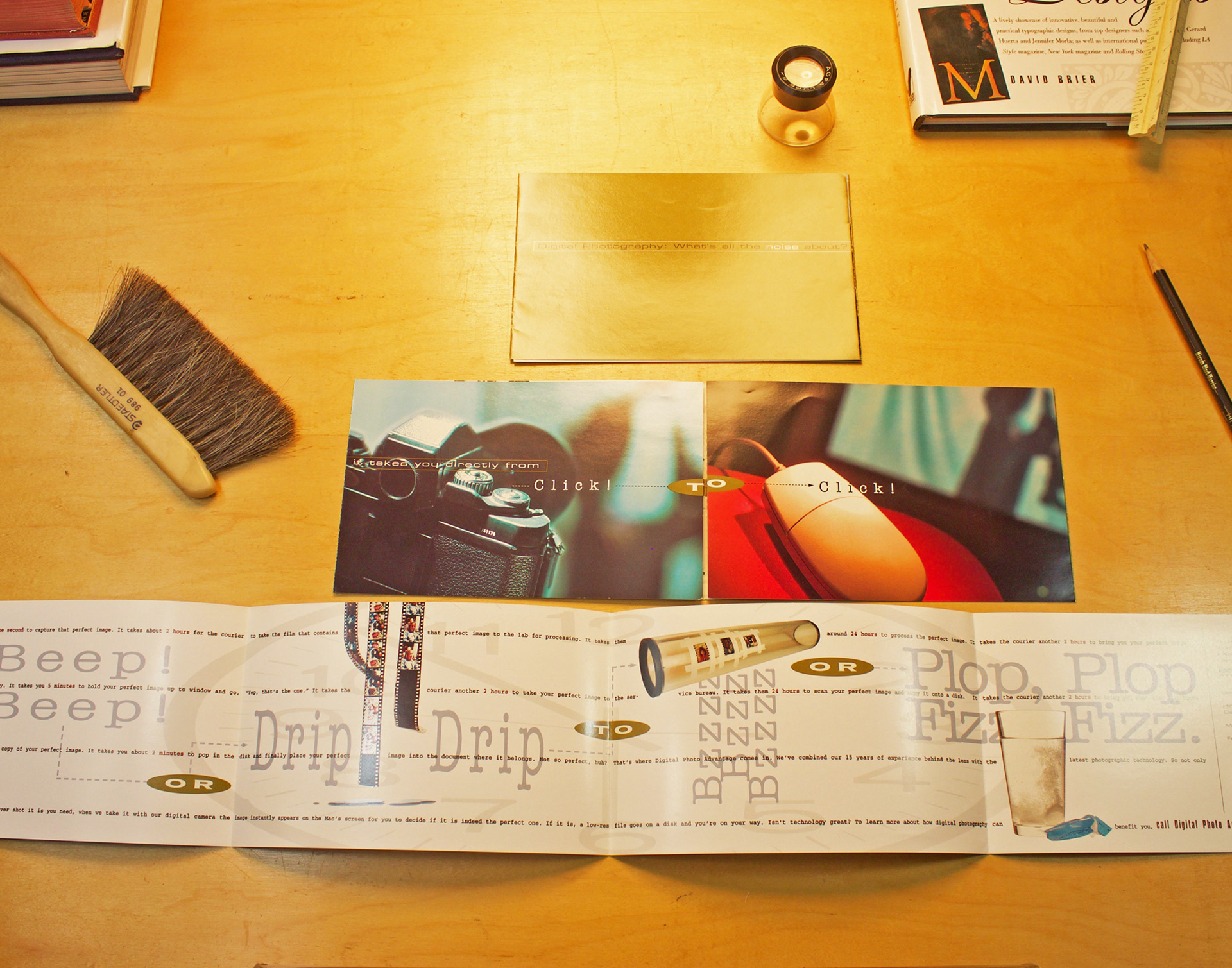 This image and following three, a fold-out mailer promoting the new technology of digital photography. Part of the same campaign as the previous ad.